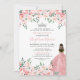Silver Crown Watercolor Floral Pink Quinceañera Invitation. A charming and elegant design featuring a silver crown on both the front and back for a regal touch. The background showcases watercolor blush pink roses and greenery, creating a whimsical and festive feel. A mix of classic serif fonts and graceful script typography keeps the invitation stylish and fun. All font colours and background colours can be customised to match your theme, and the design can be brightened by adjusting the transparency layers if desired.