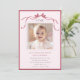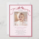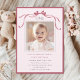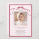 Invite friends and family to celebrate the first birthday with this cute invitation, featuring a deep blush pink ribbon bow and a photo.