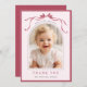 Blush Pink Red Bow Minimal Birthday Photo Thank You Card
