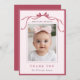 Blush Pink Red Bow Simple Birthday Photo Thank You Card