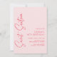 Cute and modern sweet 16 invitations with script accents. Red font on a soft pink background.