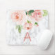 Blush Pink Rose Floral Marble Name Monogram Mouse Pad