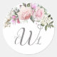 Blush Pink Rose Floral Monogram Classic Round Stic Sticker