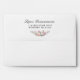 The front of the envelope has a pink rose and white hydrangea floral cascade down the left side. Kindly Send to is written beside it. Your return address is on the back and a floral arrangement is beneath it. The inside is lined with a pink rose and white hydrangea pattern. All of the text is editable.