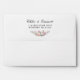 The front of the envelope has a pink rose and white hydrangea floral cascade down the left side. Kindly Send to is written beside it. Your return address is on the back and a floral arrangement is beneath it. The inside is lined with a pink rose and white hydrangea pattern. All of the text is editable. This item is part of the Summer Romance collection. Message me (I'm Nellie) if you need help finding a coordinating item.