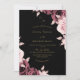 Modern stylish wedding invitation pink roses with gold dust on with a gold ink pour effect and modern calligraphy. Classy and elegant, simple and modern invitation.