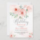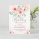 This is a feminine and beautiful birthday invitation with pink roses and green leaves.