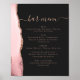 Blush Pink Rose Gold Agate Dark Wedding Bar Menu Poster