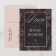 BLUSH PINK ROSE GOLD BLACK FLORAL SAVE OUR DATE ANNOUNCEMENT POSTCARD