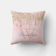 Blush Pink Rose Gold Glitter Drips Name Monogram Cushion