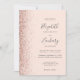 The left-hand edge of this elegant modern wedding invitation features a rose gold faux glitter design. The customisable text combines charcoal grey handwriting, copperplate and italic fonts on a blush pink background. The reverse side provides space for wedding details on a solid blush pink background, along with a QR code guests can scan to visit your website and RSVP, which saves the cost of printing and mailing separate RSVP cards.