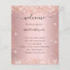 A modern, elegant wedding program, timeline. Blush pink background decorated with rose gold faux glitter dust. Personalise and add your names and wedding details. Black coloured letters. If you have more text it's possible to reduce the line space.