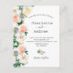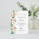 A trendy bright colourful floral wedding invitation in blush pink, rose gold and white. A classic white background on the front. Decorated with large, lush watercolored flowers, florals in white, rose gold, blush pink with some greenery. Personalise and add your names and wedding details. Black text.