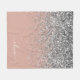 Blush Pink Rose Gold Silver Glitter Monogram Fleece Blanket