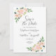 These save the date cards feature a watercolor floral design with blush pink roses and green foliage. Personalise them with your text.