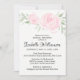 Beautiful, elegant and formal wedding invitations begin with soft blush pink roses that almost melt into the page. They are surrounded by just a touch of soft sage green leaves. The bride's name is written in an ornate flowing script. The remainder of the text is a simple, but modern font. The back of this elegant invitation is soft sage green with a very subtle leaf pattern. This invitation suite is perfect for a summer or garden wedding.