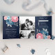 Blush Pink Roses Dusty Blue Floral Navy Wedding Tri-Fold Invitation