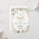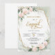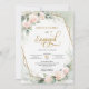 Blush pink roses eucalyptus gold frame engagement invitation