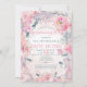Floral chic housewarming party invitation template featuring watercolor blush pink hand painted sketched peony roses with ocean blue foliage and blooms borders on a washed pale pink background. ----- The invite is suitable for spring summer rustic or garden outdoor classy romantic parties.