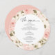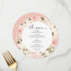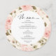 The round shape of the menu card adds a unique and stylish touch to your wedding decor. The edge of the card is adorned with exquisitely illustrated blush pink roses, enhancing the romantic ambiance of your celebration.