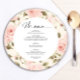 Blush Pink Roses Wedding Round Menu Card