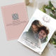 Announce your wedding in style with this elegant save the date, featuring a timeless wedding photo template adorned with a classic monogram motif wreath. The blush pink floral design and classy romantic flower greenery bring a touch of charm, complemented by minimalist calligraphy script for a refined look. Highlight your bride and groom monogram with this simple photo template, blending traditional formal style and a soft simplistic aesthetic for a perfect keepsake.