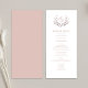 Add a touch of sophistication to your special day with this wedding menu card, featuring simple elegant calligraphy and a refined bride and groom monogram. Designed in stylish pale blush pink, this reception dinner template showcases a classic wreath laurel motif with delicate greenery leaves foliage, creating a timeless and romantic look for your rehearsal party table. The traditional typography design and classy ampersand initials add an elegant, personalised touch. Perfect for an effortlessly chic wedding