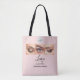 Lashes Studio Tote Bag - Blush Pink Black Script Font, Your Logo Here, 3 Photo, Lashes Business with name and social media handle.