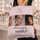 Makeup Studio Swag Bag - Blush Pink Black Script Font Your Logo Here 3 Photo Makeup Business Customer loyalty bag with name and social media handle.
