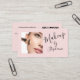 Showcase your beauty brand with this elegant, feminine business card designed for makeup artists, beauty consultants, or cosmetology professionals. The design features a soft blush pink background with an editable photo placeholder—perfect for uploading your own branding image, makeup portfolio, or model. The modern script font on the front adds a personal, luxurious feel, while the back of the card provides space to customize your business contact details and add your QR code.