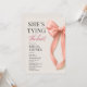 Celebrate the bride-to-be with this Blush Pink She’s Tying The Knot bow bridal shower invitation, featuring a soft pink ribbon bow, delicate feminine accents, and a modern romantic layout. Perfect for blush-themed showers, elegant gatherings, pastel palettes, and chic bridal celebrations. Fully customizable and print-ready for a beautifully polished event.