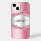 Blush pink, faux silver metal and agate, marble stone print as background Personalise and add your name. The name is written with a modern hand lettered style script.