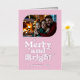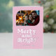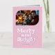 Blush Pink & Silver Merry & Bright Photo Christmas Foil Holiday Card