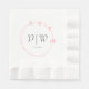 Elegant paper napkins for your wedding event that features a trendy, blush pink colour, simple heart wreath with the bride and groom's initials and wedding date in stylised lettering. Edit and replace initials and date with your own. Select your paper napkin colour.