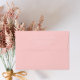 Blush pink coloured mailing envelope for your wedding invitations and features your name and address printed on back flap in a modern script style. Personalise your envelope by editing and replacing name and address with your own. Edit further to change font style or colour. Select your envelope size that fits your invitation.