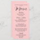 Simple style, blush pink colour dinner menu card for your wedding that features black, stylised script along with your personalised information. Edit menu card and replace wedding names and date along with menu items that will be served at your wedding reception. Select your menu card style as desired.
