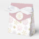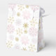 Delight your guests with this elegant blush pink winter snowflake favour box, perfect for your little snowflake baby shower. Featuring soft pastel snowflakes with glitter-look gold accents and a matching personalised label, it's a beautiful way to package sweet treats or small gifts. Finished with a white satin bow for a charming touch.