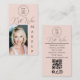 Blush Pink Black Script Social Icons QR Code Photo Makeup Business Card.