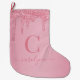 Blush Pink Sparkle Glitter Drips Monogram Large Christmas Stocking