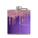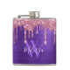 Blush Pink Sparkle Glitter Drips Monogram Purple Hip Flask