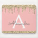 Blush Pink and Gold Modern Sparkle and Dripping Glitter Girly Monogram Name Monogram Mousepad. This Mousepad can be customised to include your first name.