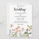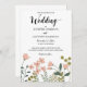 This simple, modern wedding invitation features botanical illustrations with soft blush pink coloured flowers and green stems and leaves. Clear and easy to read black lettering spells out all of your wedding details.
