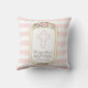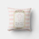 Blush Pink Stripes Floral Gold Baptism Monogram Cushion