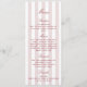 A modern wedding menu card featuring blush pink and white vertical stripes with elegant red script typography. This stylish design presents each course in a chic and sophisticated way, adding a modern striped aesthetic to your wedding table setting. Perfect for couples who love a refined, contemporary, and romantic look.