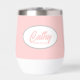 Gift your wedding bridesmaid with this trendy and personalised, stainless steel wine tumbler with her name in stylised script inside a white, oval design. Background colour and script is a blush pink colour. Perfect for a bachelorette party as well! Personalise your wine tumbler by editing and replacing bridesmaid name with desired name. Available in many, popular bridesmaid wedding colour schemes.