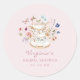 Add a personalised touch to your bridal tea party with our Blush Pink Wildflower Bridal Tea Party Round Sticker. Featuring stunning hand-painted watercolor florals in deep purple, dusty blue, and blush pink with sage greenery, these stickers beautifully adorn cream and gold floral teacups and saucers on a delicate blush pink background, complemented by a cute pink butterfly. Perfect for baked goods and candy favours, these stickers ensure a cohesive and enchanting atmosphere, making each keepsake memorable.
