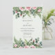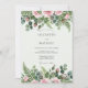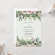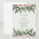 This design features a romantic array of soft pink roses and delicate rosebuds nestled among lush greenery. Intricate watercolor ferns and silver dollar eucalyptus branches create a natural, earthy feel. The palette combines pastel tones with vibrant forest greens for a timeless and elegant look.