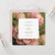 Modern and trendy with classic vintage feel. This lovely wedding invitation features a bouquet of voluptuous roses against a chic olive green background, while the back includes a contrasting blush pink. The set of contemporary fonts exude a stylish modern elegance. Personalise with wedding website and RSVP detail at the back.
