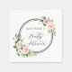 This baby shower paper napkin features painted watercolor flowers in blush pink, white, and green foliage with circle frames. For more advanced customisation of this design, Please click the "Customise" button.