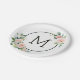 This monogram paper plate features painted watercolor flowers in blush pink, white, and green foliage with a circular frame. For more advanced customisation of this design, Please click the "Customise" button. Matching items are also available.